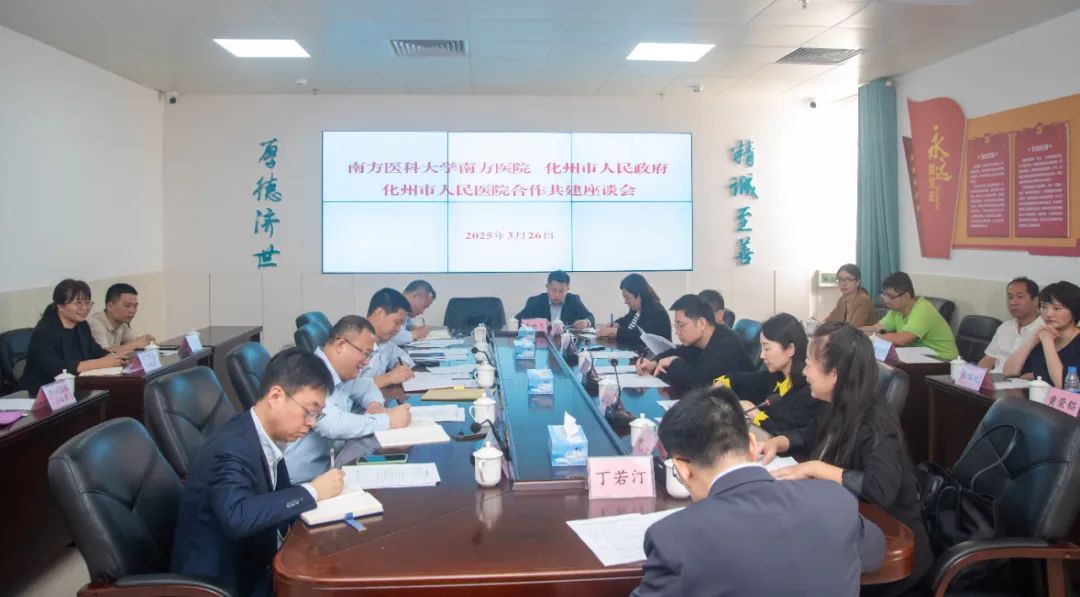 授旗仪式结束后,化州市政府、南方医院领导等相关人员在6号楼13楼召开了座谈会。会议围绕如何进一步深化帮扶合作、提升化州市医疗卫生服务能力水平等议题进行了深入交流和探讨。